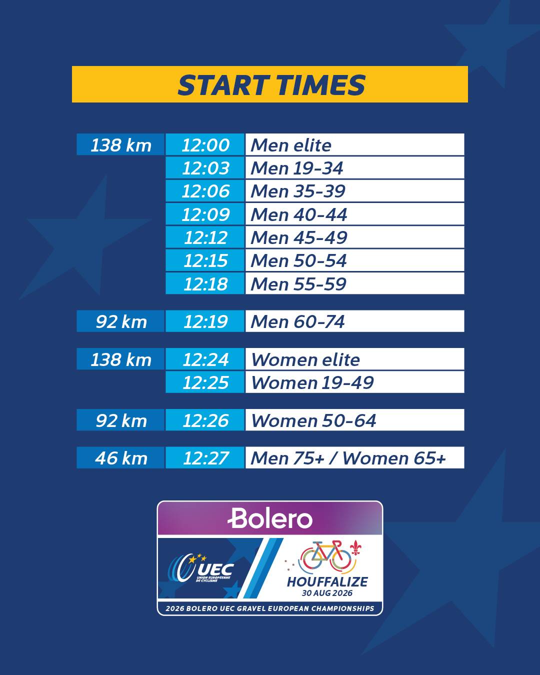 • 12u00: Start 2026 Bolero UEC Gravel European Championships